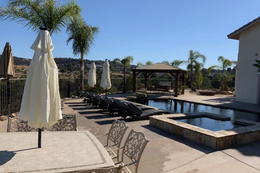 Our pool is great for laps, lessons or just enjoying our pool in the hills of Murrieta. You will have access to a private restroom, outdoor shower, hot tub and beautiful atmosphere day or evening. Thank you for viewing our profile, Renee and Judson. Please note that our pool is not heated however we do have a jacuzzi for romantic evenings or midday events.