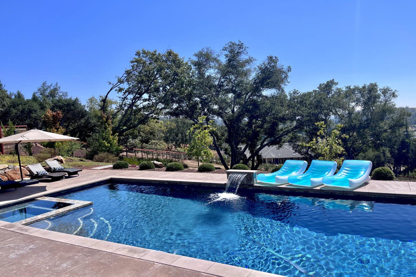 Professionally maintained, heated modern pool with attached spa ready for your relaxation and rejuvenation! Pool is heated and stays at a comfortable temperature. We are the ONLY Sonoma County pool rental that has a private pool house! Air conditioned pool house is attached to home but has completely private entrance with full kitchen and bathroom. Keep your drinks ice cold in the refrigerator and heat up snacks in the microwave or oven. We have plenty of pool toys for your enjoyment! We also have a house made of Cob that kids are welcome to explore. Our pool has a minimum 2 hour booking time. Message me for other inquiries such as photo shoots and small celebrations. We would be delighted to host you! Check out our new instagram account @Sunnysonomapool for photos and a short video of our space! NEW, we can host a meditative evening sound bath.