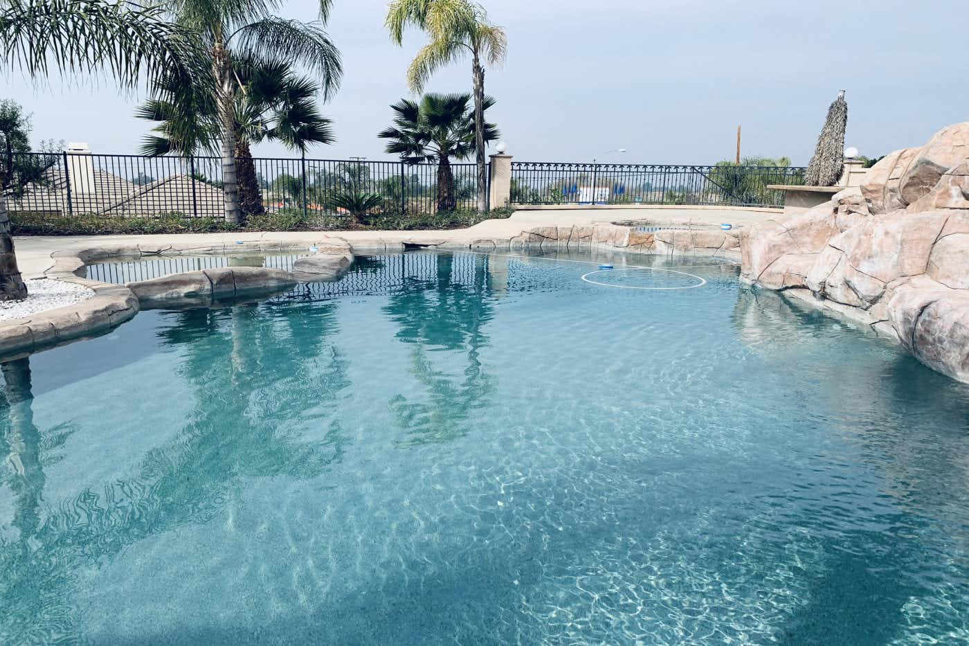 The pool is at the backyard of a mansion in Alessandro Heights. The most upscale neighborhood in Riverside, California. The whole house is completely fenced with excellent privacy. The salt water pool with water slide and water falls will make your group have a lot of funs. The gated driveway can park 10-12 cars. The street parking along the house can accommodate additional 5 cars. Huge one acre yard with professional landscaping. Beautiful sunset view and city lights view will make your family/group memorable for life!