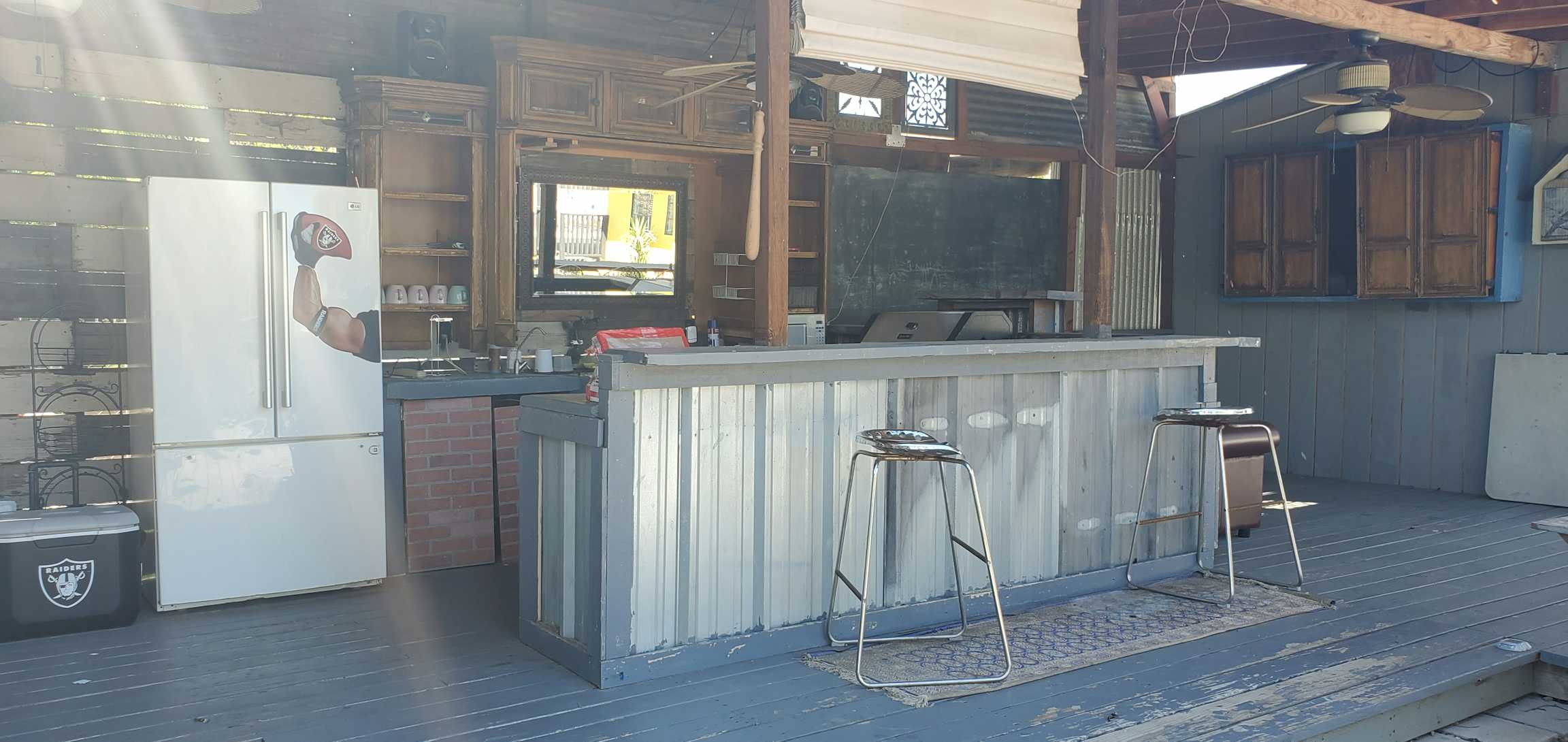 Enjoy a wood burning fire pit for relaxing or roasting marshmallows for stores. Fire pit comes with 1 bunch of wood.