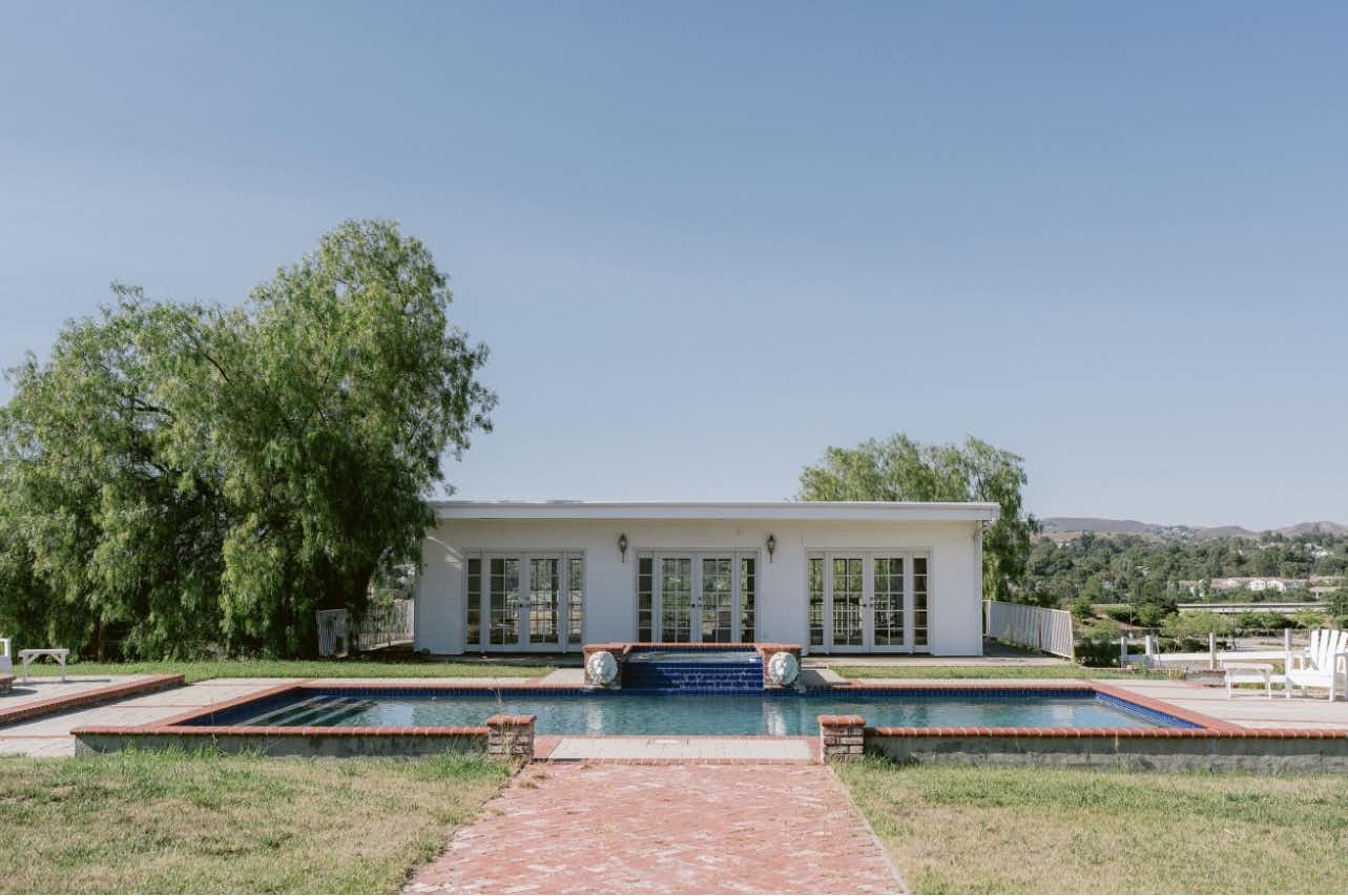 Beautiful private resort pool & spa located on a knoll property with views over Santa Monica mountains. Newly renovated very large pool with amazing Pebble Tec finish. Large grass area to lay out.