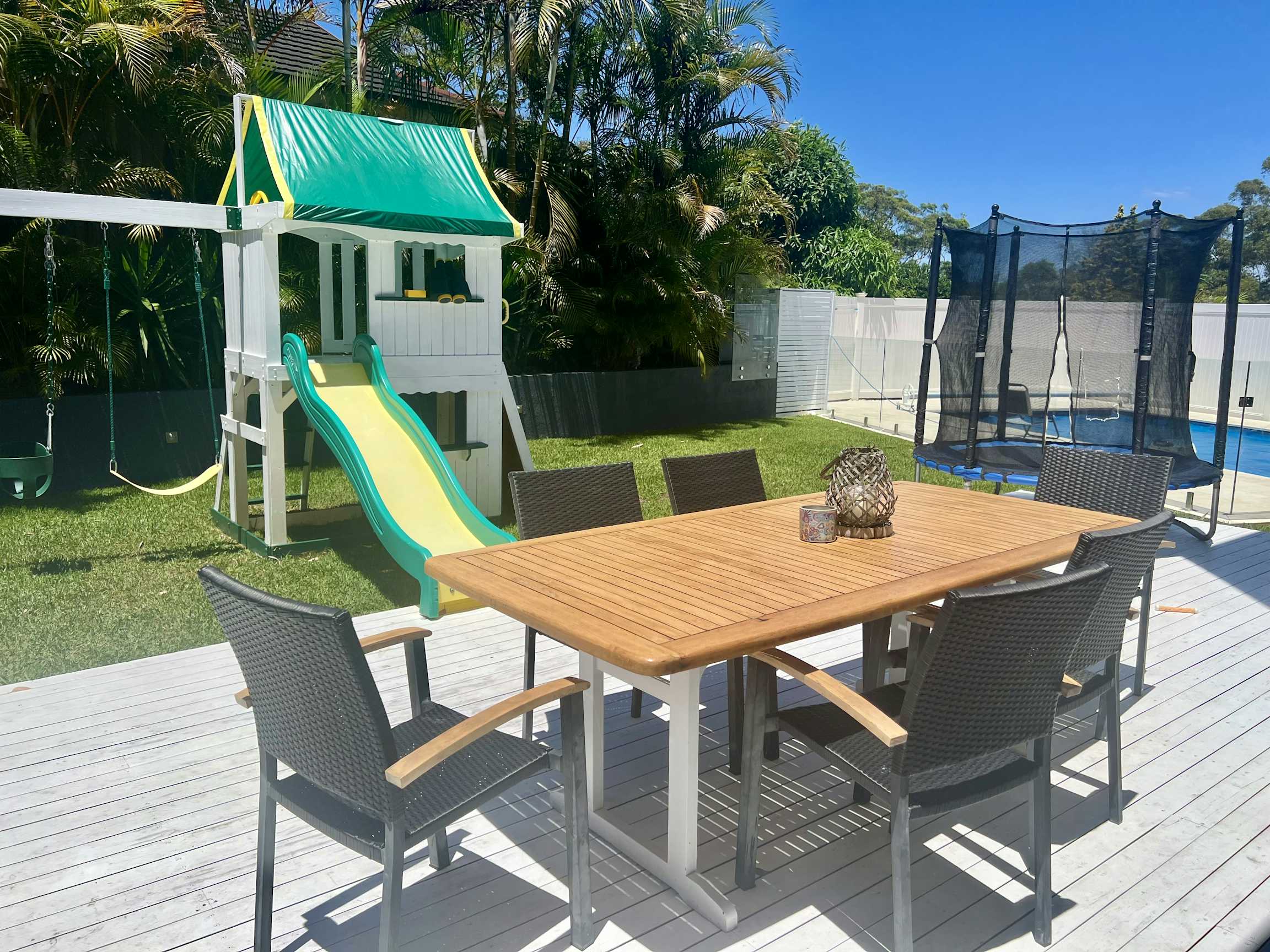 Heated and private magnesium pool in Terrigal. Perfect for younger kids as the pool has a step along one side. Playground and table with chairs can also be used by guests.