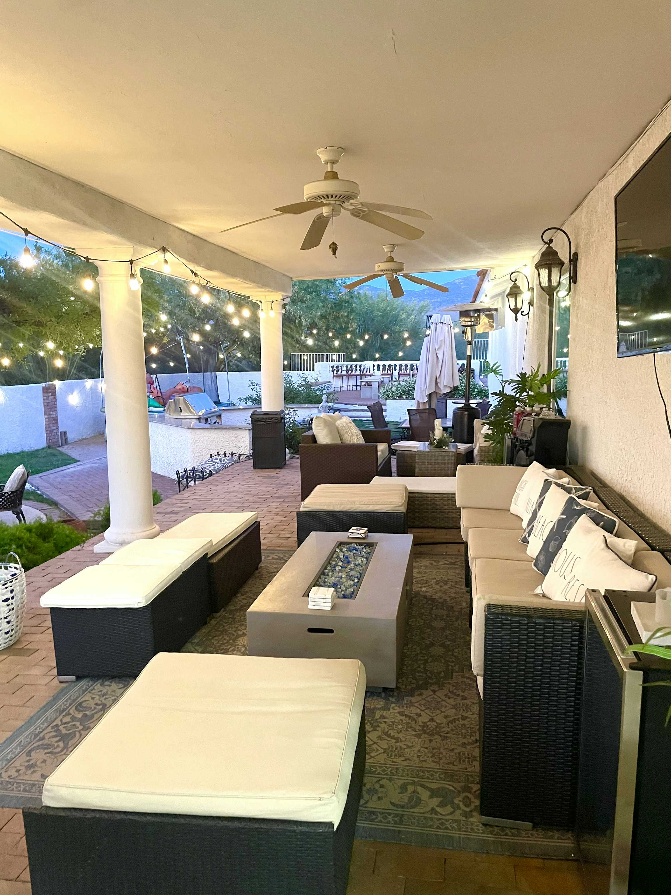 Mist system surrounds the cover patio and lowers the patio temperature.