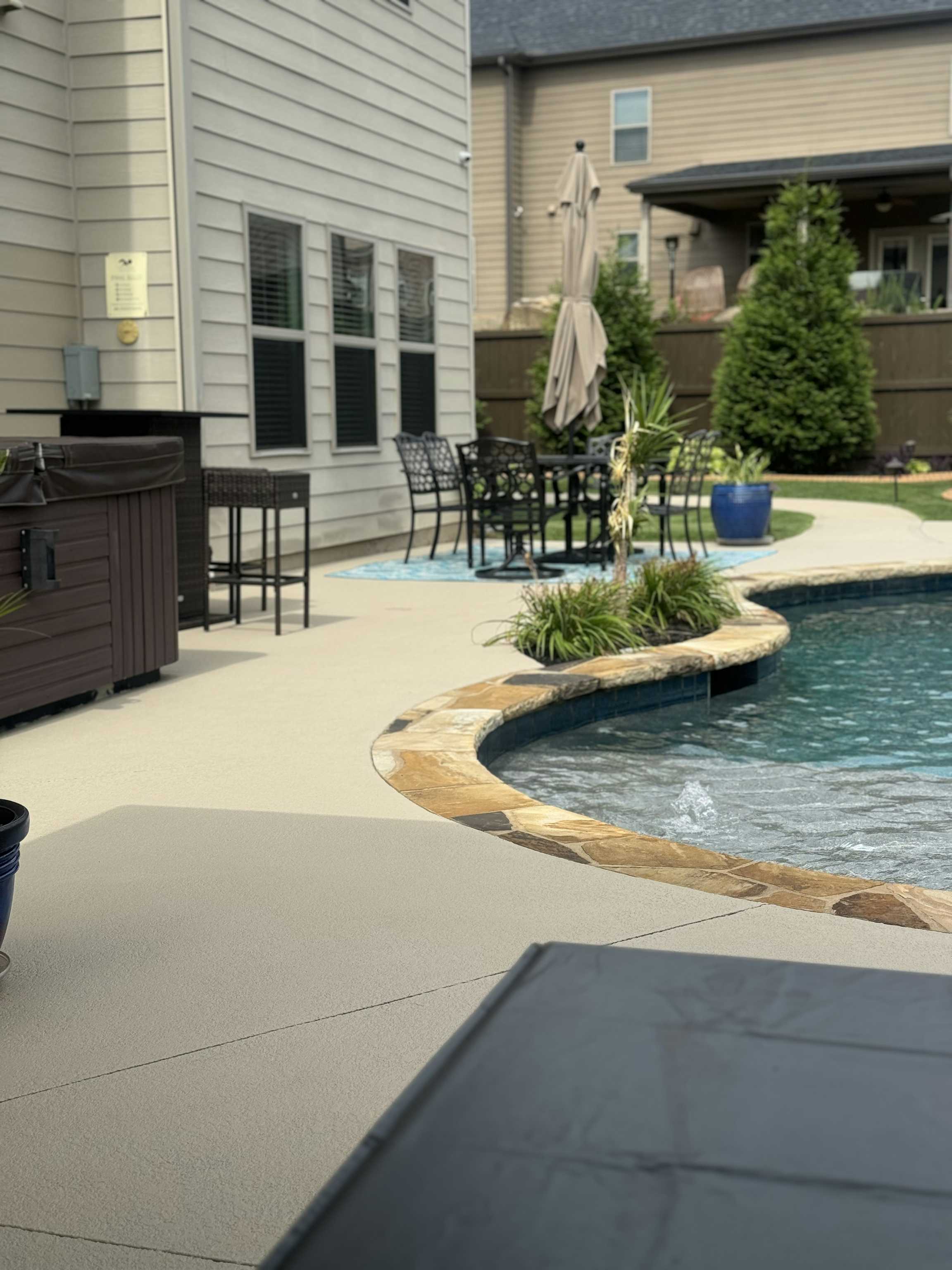 This tropical oasis has a 15,000 gallon pool. There are plenty of tables, chairs, lounge chairs, high top bar tables. We have a bar that can be utilized to serve your beverages. DJ and bartender for your convenience for additional fees.