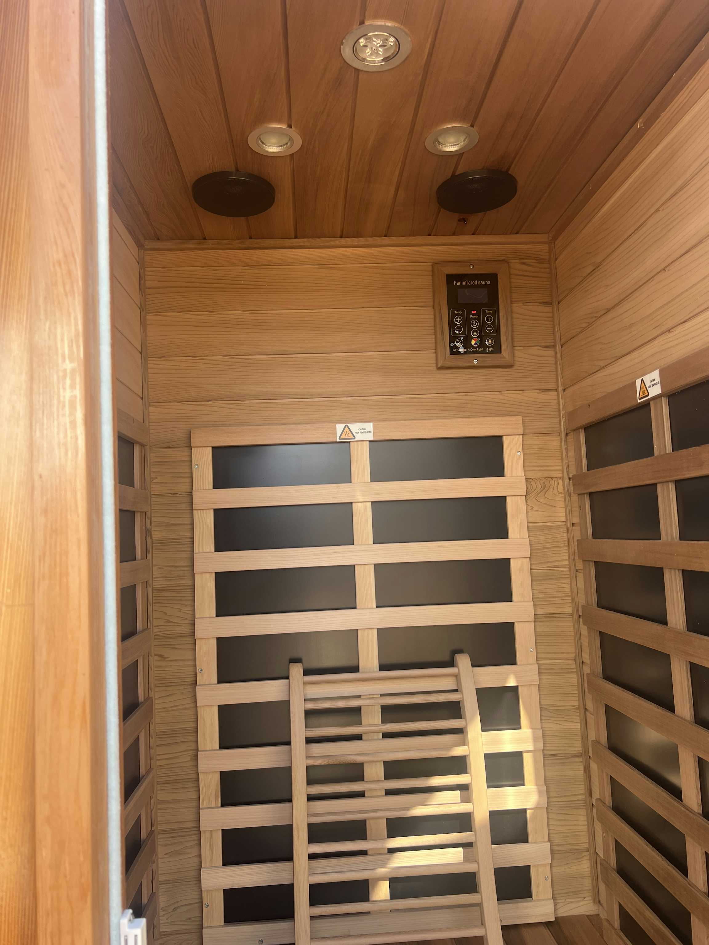 One person sauna brand new- got it for health benefits. I ask that you wear shorts and a tank or sports bra in the sauna, swimsuits will be fine also. Each session is for a one hour rental. That time starts when the machine is powered on. Please read warning sign of duration and how long to stay in sauna .