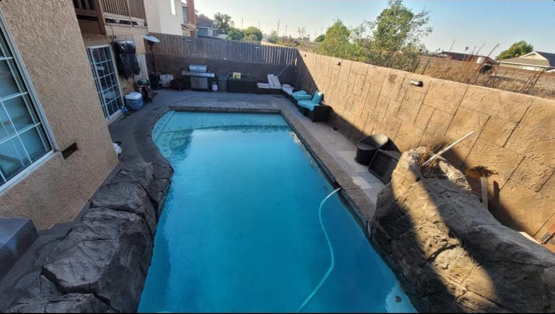 Imagine a perfect spot for a small, intimate gathering where you can cool down on a hot sunny day. Our Rockslide Pool offers just that--a cozy, private oasis designed for close family and friends to relax and enjoy each other's company. The pool itself is an inviting 10 feet deep, measuring 12 feet in width and 22 feet in length, providing ample space for swimming and fun. Surrounding this aquatic haven is a beautifully crafted rock-themed patio, which extends to 15 feet in width and 30 feet in length. This charming patio blends seamlessly with the natural surroundings, offering a serene backdrop for conversations, sunbathing, or simply enjoying the refreshing pool. Whether you're looking to host a family gathering or a small group of friends, this intimate space is the perfect escape to beat the heat and make unforgettable memories.