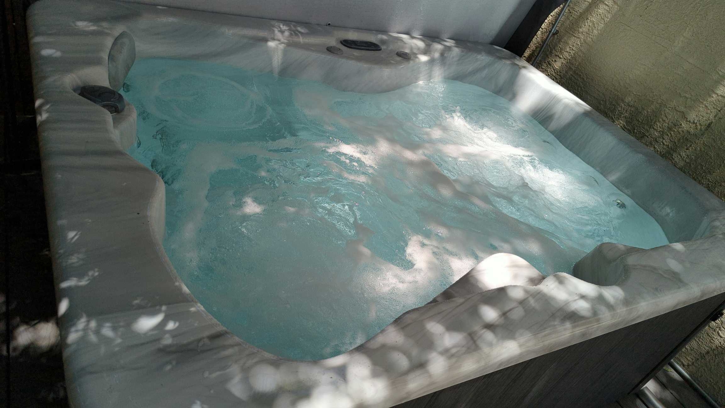Beautiful, newly redone saltwater pool with fountain and detached chlorine hot tub.